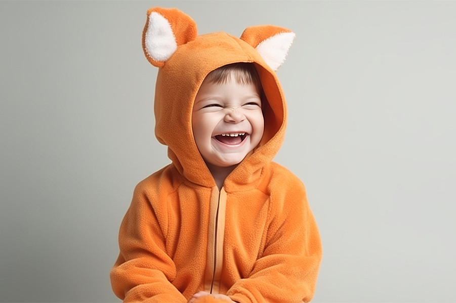 Herabhängende Ketten oder Kordeln sind ein besonders großes Risiko. Ihr Kind kann daran hängenbleiben und sich schlimmstenfalls strangulieren. Auch weite Kleidungsstücke werden schnell zur Stolperfalle. Besser sind einteilige Kostüme, sie halten oft auch warm.